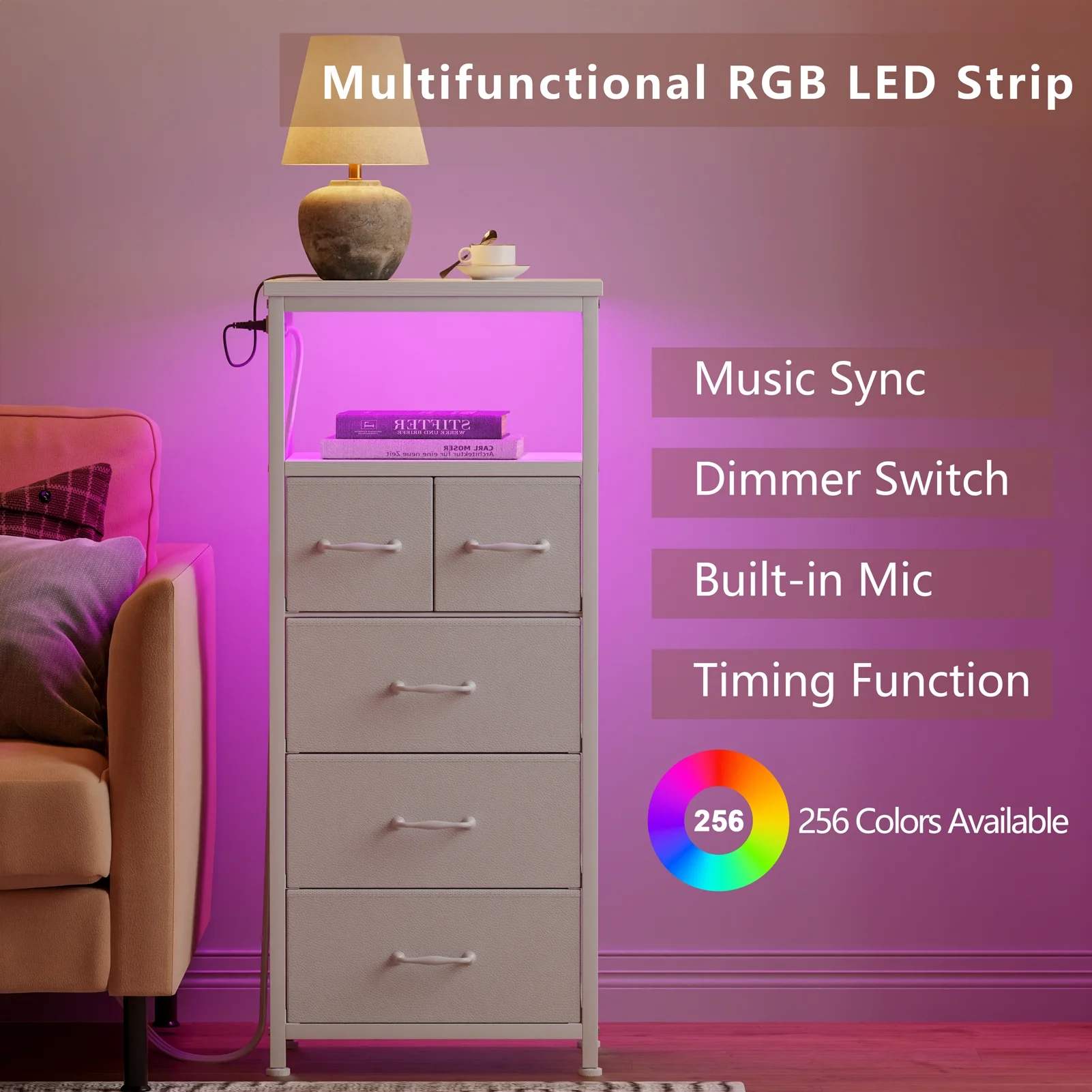 TYDIMOR Small Dresser for Bedroom, 5 Drawer with Charging Station, White, Ideal for Adults